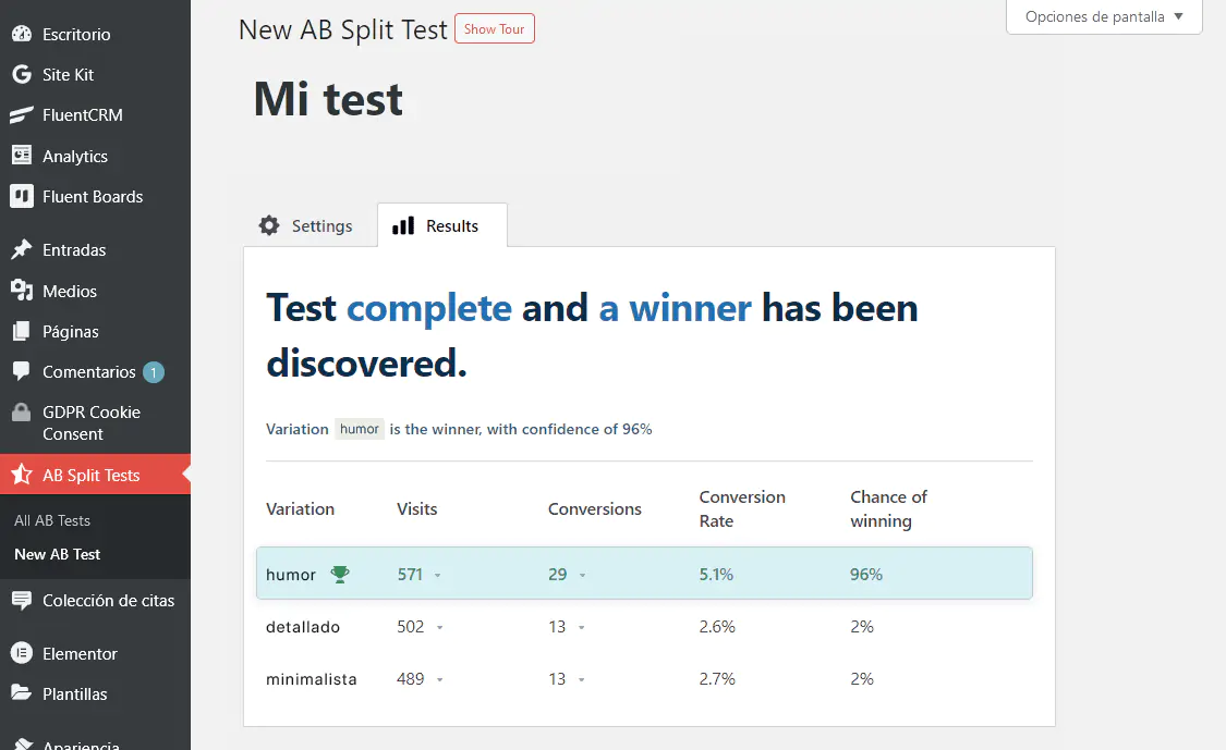 A partir de ahora, AB Split Test mostrará a nuestros visitantes diferentes versiones de nuestro contenido, registrando todos los datos relevantes sobre su comportamiento.