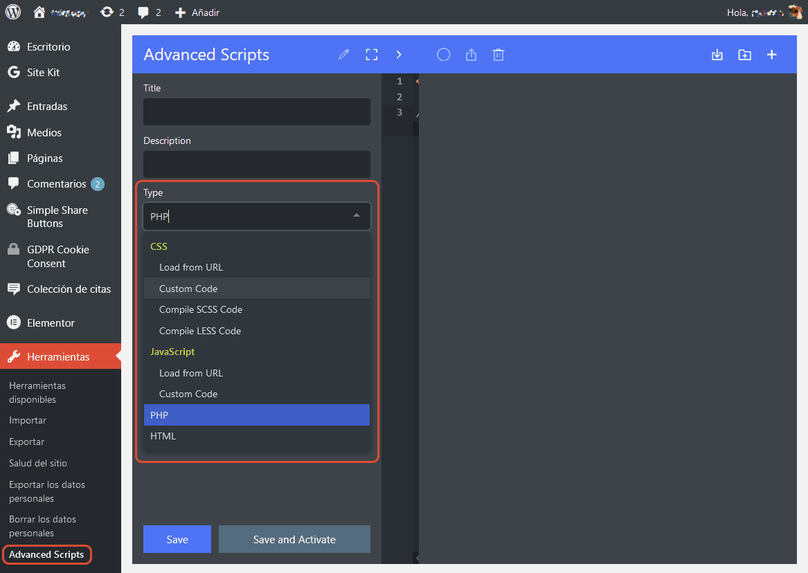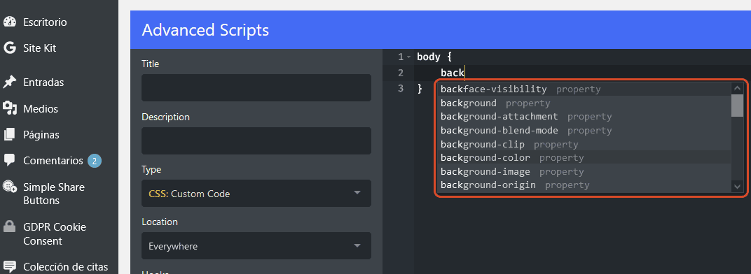 Este componente se presenta como “el mejor gestor de scripts del mercado. Además de PHP, CSS y Javascript, también podrás escribir código SCSS y LESS, usar ganchos personalizados y todo esto en una interfaz superadora”. Veremos si cumple su promesa.