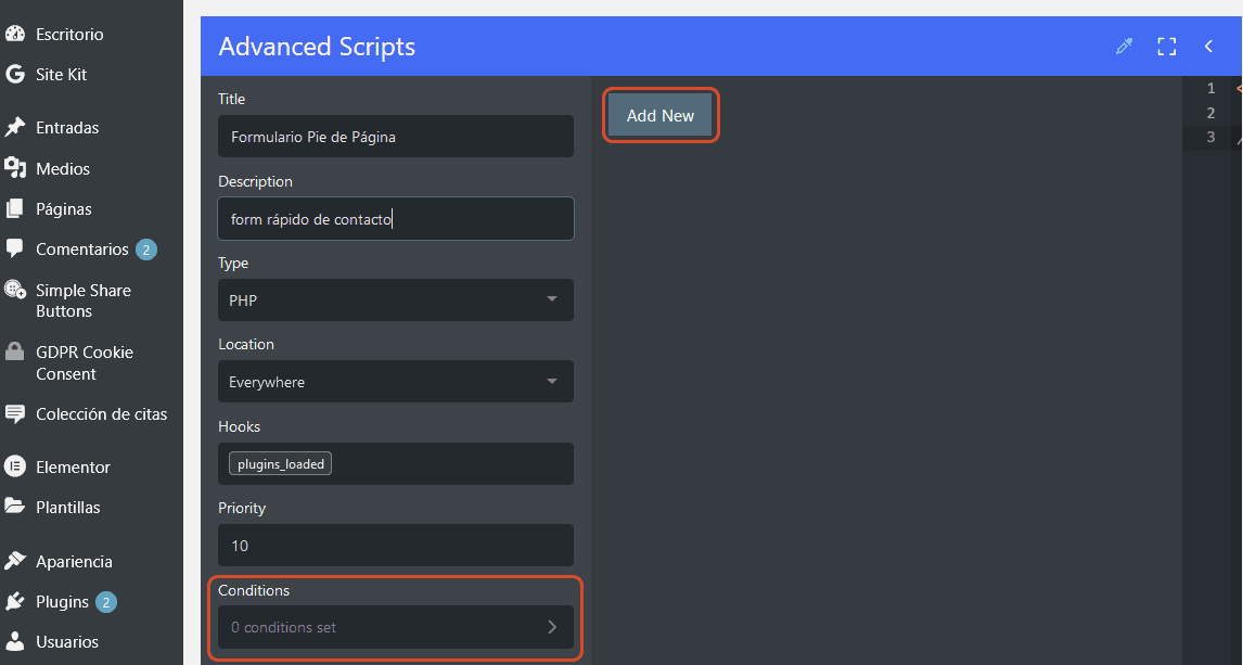 Advanced Scripts Plugin es un plugin reciente (2020) pensado para ser un reemplazo limpio y moderno del complemento Code Snippets, o bien una herramienta que suplante la mala práctica de tener que agregar código al archivo Functions.php. Una de sus grandes ventajas, a partir de la nueva versión 2, es que nos permite agregar condicionales para que un script sólo corra en Entradas/Páginas determinadas por nosotros. Esto y otras bondades más lo han convertido en el mejor plugin de gestión de Scripts del planeta. A continuación, sus puntos fuertes.