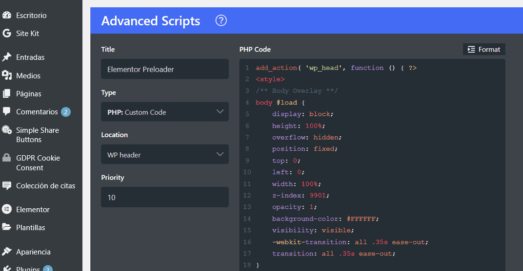 Al agregar cualquier tipo de script, podemos elegir cuándo se cargará en la página. Para los que trabajamos constantemente en la velocidad de nuestro sitio esto es realmente espectacular. De hecho es muy útil si deseamos limitar scripts a sólo áreas específicas del sitio. Hasta podemos llamar código manualmente desde donde lo necesitamos, o usar ganchos personalizados.