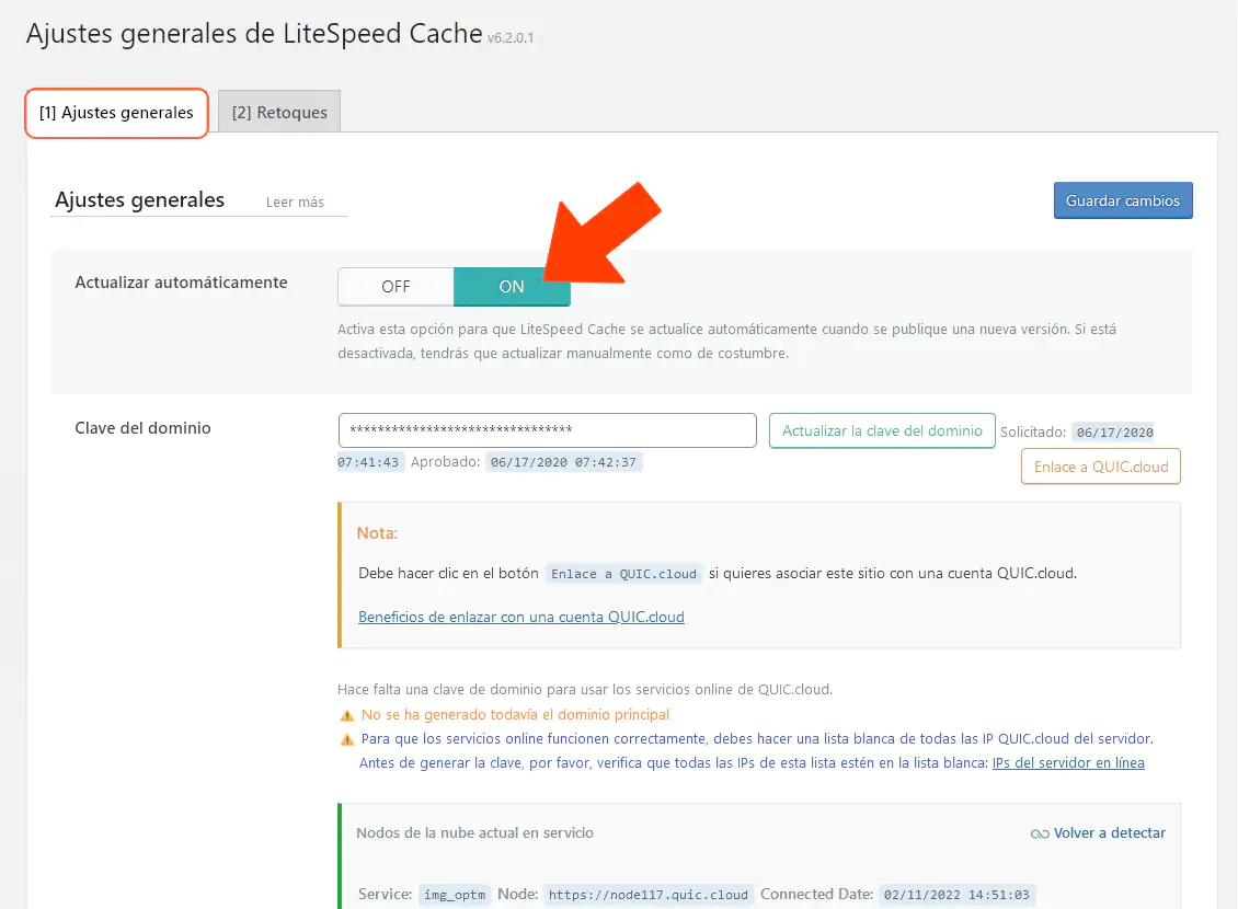 - Actualización automática: nuestra recomendación es que siempre los plugins de confianza puedan actualizarse automáticamente (ON). La razón: no solamente es conveniente tener la última versión de nuestros plugins importantes por razones de rendimiento sino también por seguridad (es común que diferentes parches surjan a lo largo del tiempo exclusivamente para resolver agujeros en donde usuarios maliciosos podrían entrar a nuestro sitio… Todo por culpa de un plugin). Por otro lado, LiteSpeed se actualiza tan frecuentemente que sería molesto tener que realizar una actualización manual a cada rato.