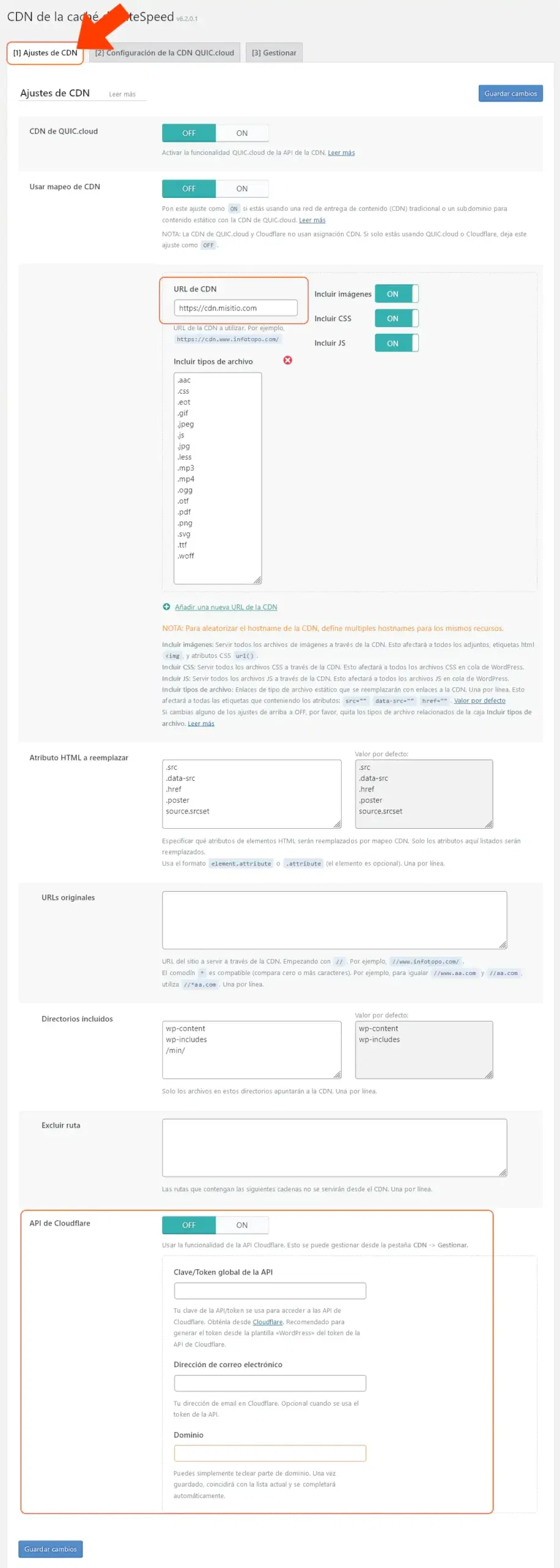 Si tu servidor soporta el excelente servicio de Cloudflare (como Duplika), debes —y claramente es una gran ventaja— activar esta opción completando con los datos de tu cuenta.