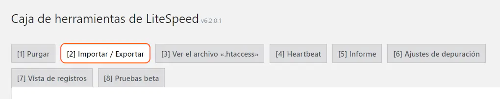 - Exportar: este botón graba todas las configuraciones de LiteSpeed en un solo archivo descargable.