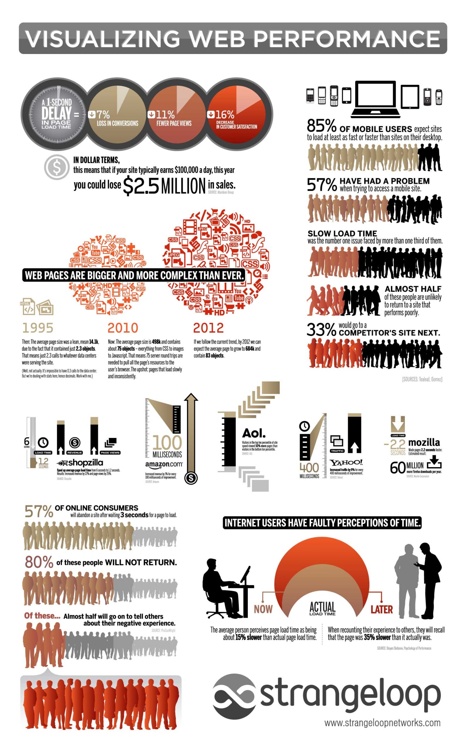 Para entender el modo en que perciben los usuarios la velocidad de cada página, además de determinar cuánto tiempo es considerado normal, los chicos de Strangeloops prepararon la siguiente infografía (clic para ver una versión en mayor resolución).