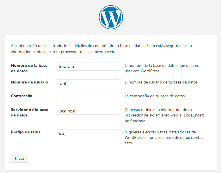 Completamos los datos y listo: tendremos WordPress instalado.