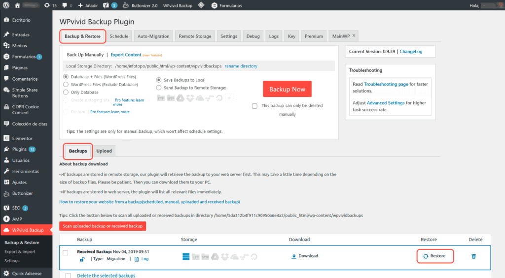 Y ahora veamos cómo realizar la migración con WPvivid