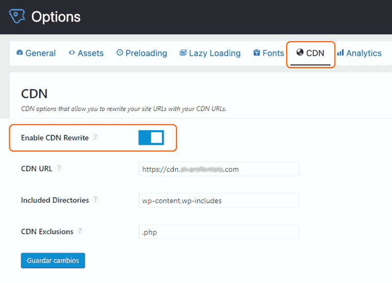 ● Tras ingresar nuestra URL de CDN, todos nuestros activos, imágenes, etc., se reescribirán para apuntar a dicha CDN.
