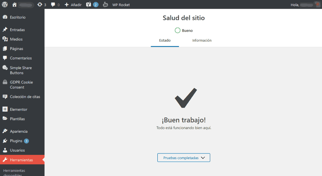 El Estado de Salud del sitio muestra información crítica sobre tu configuración de WordPress y los elementos que requieran de atención.