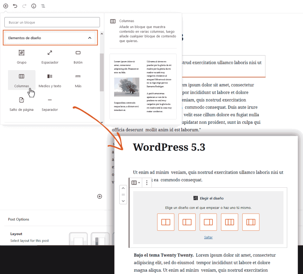 El editor por bloques ‘Gutenberg’, nacido en la quinta generación de WordPress, ha ganado un repertorio de mejoras significativas en esta nueva versión WP5.3; podemos señalar que quizás fue el apartado más cuidado, más trabajado en el desarrollo de este paquete de actualización. Para empezar, su empleo se ha vuelto menos aparatoso, esto de la mano de Motion (la librería Sass que permite crear transiciones y animaciones en idioma CSS con alta fluidez). Pero no crean que más mejoras han significado mayor cantidad de código: asombrosamente, el editor de Bloques Gutenberg es más liviano que nunca (lo que se traduce en una mejora de hasta un 27% en la velocidad de carga de página). Ni bien lo empleen, comprobarán que toda edición resulta más aceitada, como si nos deslizáramos sobre un tobogán de agua.