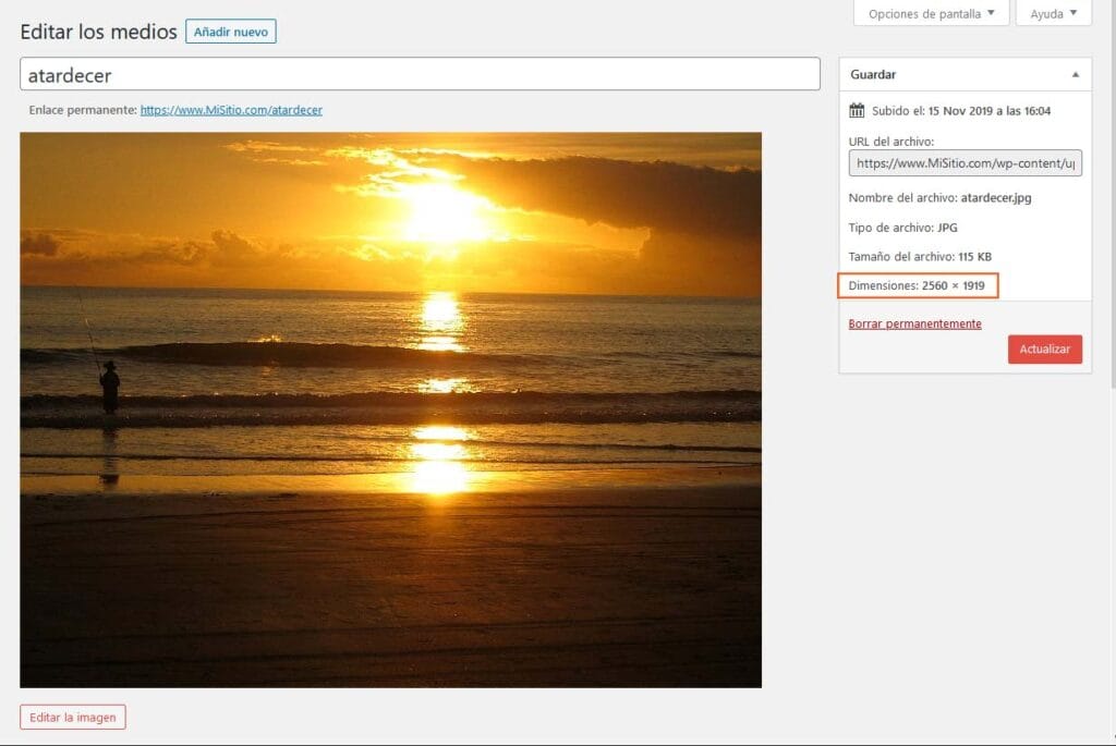 Hoy en día, la calidad de las cámaras fotográficas, incluso de las incorporadas en nuestros celulares, captura imágenes que poseen una definición (y un tamaño) importante. WordPress 5.3 no se ha querido quedar atrás en el tiempo, por lo que han innovado en la suba de archivos pesados bitmap (.JPG, .BMP, .PNG, etc.) permitiendo que el gestor de la Librería de Medios identifique y resamplee inteligentemente las imágenes. La razón de esto es sencilla pero poderosa: es bueno que las imágenes de nuestro sitio se vean preciosas, pero también es necesario que no pesen demasiado puesto que el embudo de carga de un sitio suelen ser las imágenes en sí. Una de las mejoras radica en que fotografías mayores a 2560 píxeles de ancho se resamplearán a esta medida máxima de manera automática (añadiéndose la palabra “escalada” al nombre del archivo optimizado). Es una facilidad muy conveniente dado que muchos editores o administradores de sitios pasan por alto el tamaño de archivos de las imágenes y lo que eso implica en los tiempos de carga de una puesta (sobre todo en dispositivos móviles).