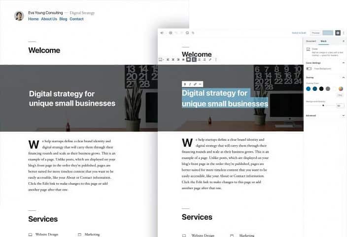 Es común que WordPress acompañe sus actualizaciones generacionales con un nuevo tema; en este caso, se trata de Twenty Nineteen, el nuevo theme por defecto. Como imaginarán, está optimizado para Gutenberg a fin de lucir todos sus encantos. El acento está puesto en que lo que uno vea en el backend sea igual a lo que se ve en el frontend, acelerando el diseño de las puestas muchísimo.
